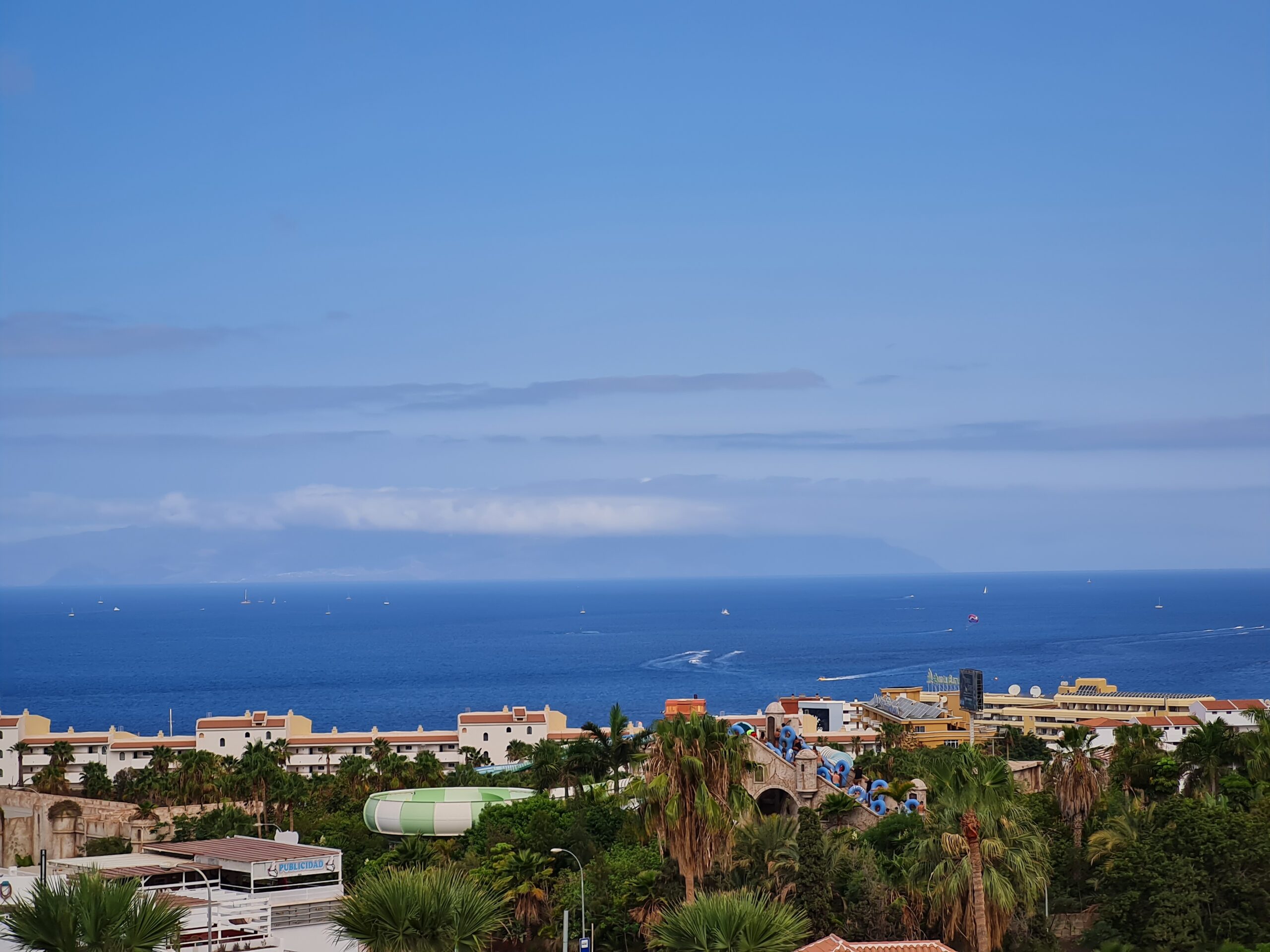 In the most popular resort in South Tenerife – Las Americas – Island Village Heights, view over the Atlantic Ocean. 14 minutes walk to the Ocean and beaches. The San Eugenio Mercadona grocery store is on the way. Just around the corner is 4 smaller grocery stores , and several places to eat. The apartment has a large terrace and rooftop pool, which has ocean views. Air-condition. Brand new renovation, new furniture and kitchen. Kitchen includes dishwasher machine as well. At the end of the corridor, on the same, 2 floor, are an additional terrace where it is very pleasant to enjoy the sunrise with morning coffee. The apartment is located on a dead end street (Italy street), area is quiet. Located next to the Aqua park. Free parking in front of the building. The building has an elevator.